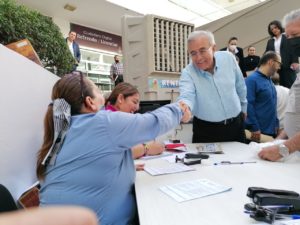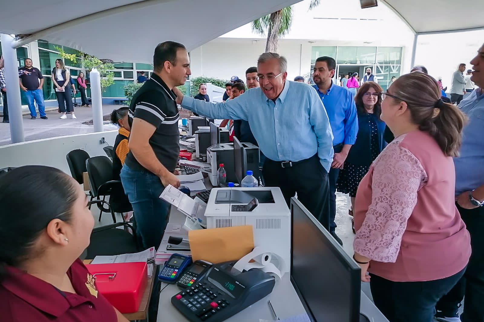 *Culiacán, Sinaloa, a 19 de Noviembre de 2022.-* Con el objetivo de supervisar que los ciudadanos cuenten con todas las facilidades posibles para el cumplimiento de sus obligaciones fiscales en materia de trámites vehiculares durante el Buen Fin, esta mañana el Gobernador Rubén Rocha Moya, acompañado de Ismael Bello Esquivel, Director General del Servicio de Administración Tributaria del Estado de Sinaloa (SATES), llevó a cabo una visita de supervisión a las instalaciones de la Unidad de Servicios Estatales de Culiacán, donde aprovechó para saludar a los empleados de las distintas dependencias que se encontraban laborando y para dialogar de manera personal con los contribuyentes que en ese momento se encontraban realizando sus pagos.