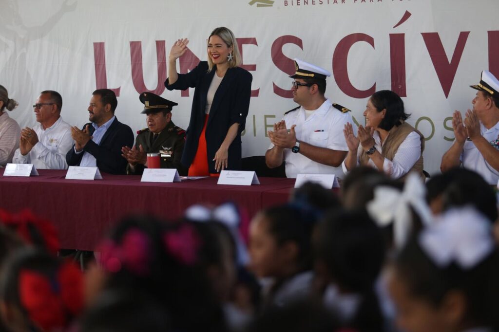 «A mí me emocionan los Lunes Cívicos, ahorita estaba viendo la escolta de esta escuela Independencia y veía que la abanderada es una niña; quiero compartirles que cada vez que visito escuelas en Lunes Cívicos me da mucha nostalgia, ya que cuando yo fui niña, fui la abanderada de mi escolta de mi escuela primaria», le dijo a la asistencia.