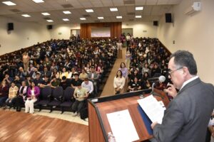 “Hoy, el 54 por ciento de nuestra comunidad estudiantil son mujeres, lo cual nos enorgullece y nos motiva. Las mujeres están teniendo mayor presencia y ascendiendo en el terreno docente, científico y humanista; son cada vez más las que ejercen liderazgo en la estructura administrativa de nuestra Universidad”, afirmó el Rector.