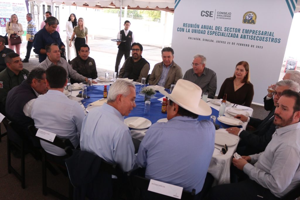 Culiacán, Sinaloa. A 23 de febrero de 2023.-Como un reconocimiento a la ardua labor en contra del secuestro que ha logrado bajar su incidencia, el Consejo de Empresarios Sinaloense llevó a cabo la Reunión Anual del Sector Empresarial con la Unidad Especializada Antisecuestros de Sinaloa.