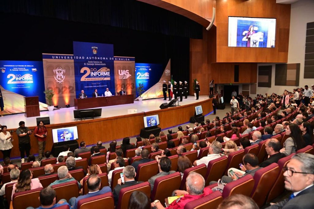 Asumiendo la rendición de cuentas como un deber, el Rector de la Universidad Autónoma de Sinaloa (UAS), doctor Jesús Madueña Molina, rindió su Segundo Informe de Labores 2022-2023 en el cual destacó el logro de más del 65 por ciento de las metas planteadas en el Plan de Desarrollo Institucional «Con Visión de Futuro 2025».