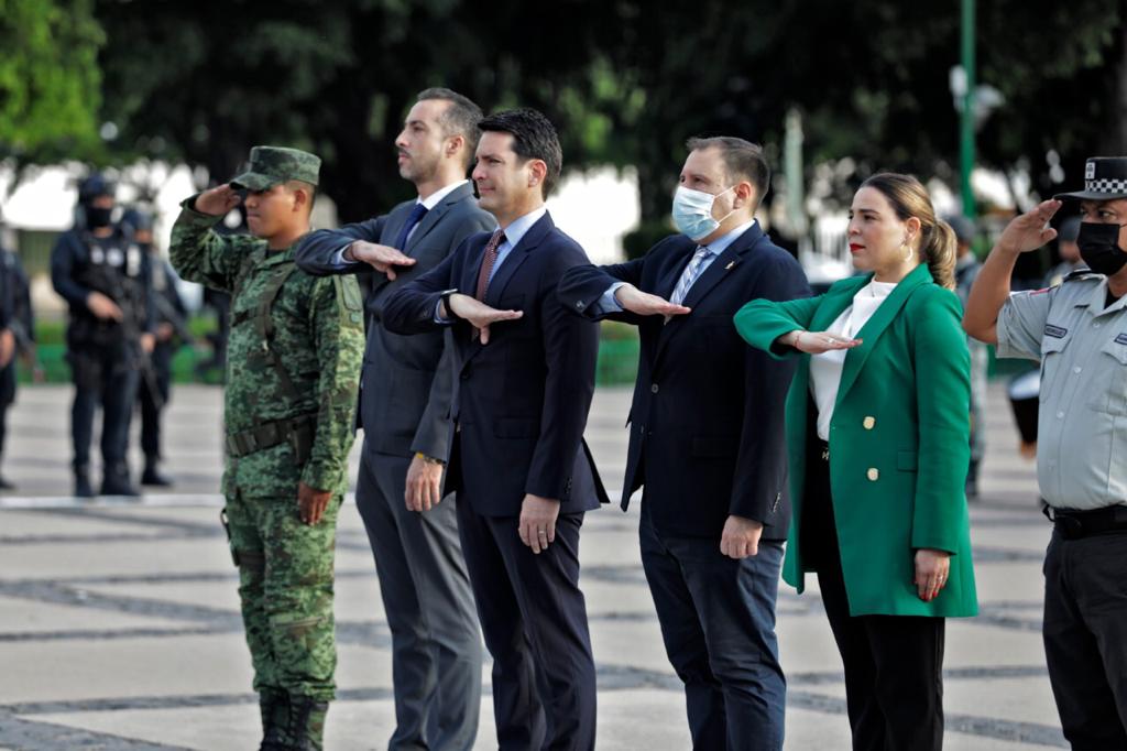 Culiacán, Sinaloa, 13 de septiembre del 2022.- Autoridades civiles y militares conmemoraron el aniversario luctuoso número 175 de los niños héroes de Chapultepec con un izamiento de bandera a media asta y con Honores de Ordenanza en la plaza cívica de Palacio de Gobierno.