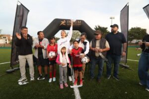La Presidenta Municipal entrega la rehabilitación integral de la cancha de pasto sintético, un espacio emblemático para la comunidad mazatleca