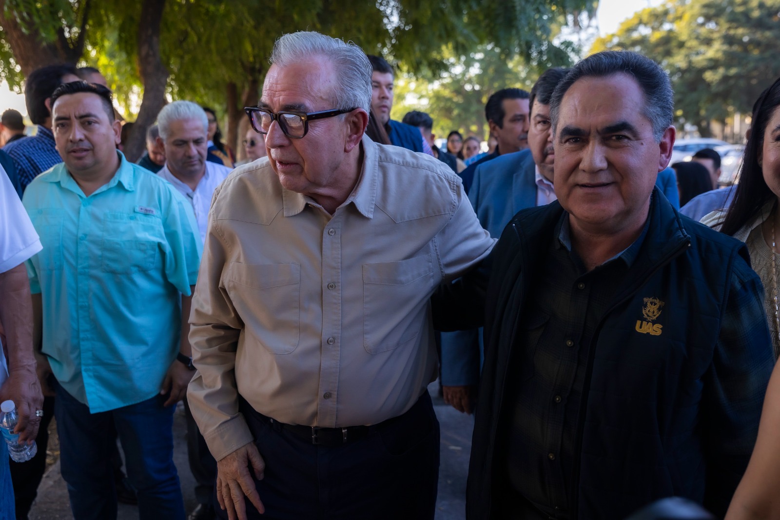 Culiacán, Sin.. En lo que llamó un afortunado reencuentro con las autoridades de la Universidad Autónoma de Sinaloa (UAS), el gobernador Rubén Rocha Moya visitó Ciudad Universitaria a invitación del rector Jesús Madueña Molina, para participar en la inauguración del Gimnasio de Halterofilia “Jorge Huie Molinet”, un emigrante cubano radicado desde hace décadas en Culiacán y que es considerado el padre de la halterofilia en Sinaloa.