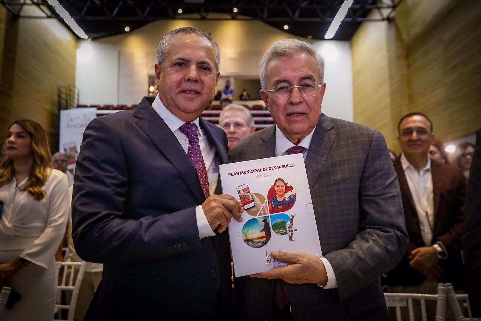Los Mochis, Ahome, Sinaloa a 17 de junio de 2022.- Al asistir a la presentación del Plan Municipal de Desarrollo 2021-2024 del presidente municipal de Ahome, Gerardo Vargas Landeros, el gobernador Rubén Rocha Moya señaló que para su gobierno lo más importante es la obra humana y el apoyo a la gente que menos tiene, acciones que se llevan a cabo en este municipio de Ahome.