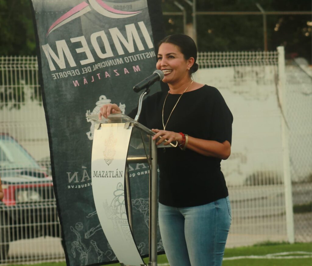 «Una obra más para ustedes, donde el deporte, de nueva cuenta, viene a ser beneficiado. Una administración que suma ya, a la fecha, más de 20 millones de pesos en campos reempastados, porque eso seguimos firmes en este compromiso: hoy gana Academia Tigres, hoy gana la Liga de Futbol 12 de Mayo y vuelve a ganar Mazatlán», expresó la directora del Imdem.