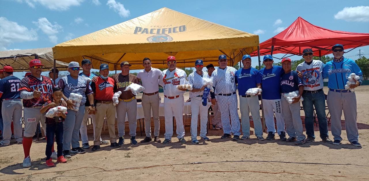 Mazatlán, Sin. A 12 de junio del 2022.- En el marco del arranque de la quinta temporada de la liga campesina de Béisbol ‘Arroyo de los Burros’, que se desarrolla en la zona rural de Mazatlán, el Regidor del Partido Sinaloense, Reynaldo González Meza sorprendió a los 10 equipos participantes haciendo entrega un kit de pelotas de béisbol a cada uno, con el objetivo de estimular a los peloteros a tener mejor desempeño durante la liga y no dejen de practicar este deporte por falta de equipo.