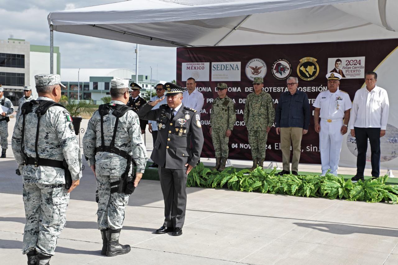 Además del titular del Ejecutivo, también asistieron al evento Cruz Isaac Muñoz Navarro, Director General de Seguridad en Carreteras e Instalaciones de la Guardia Nacional, Guillermo Briseño Lobera, Comandante de la Tercera Región Militar, Javier Abarca García, Comandante de la Octava Región Naval, Porfirio Fuentes Vélez, Comandante de la Novena Zona Militar, Feliciano Castro Meléndrez, Secretario General de Gobierno, Claudia Zulema Sánchez, Fiscal General del Estado, Gerardo Mérida Sánchez, Secretario de Seguridad Pública, el alcalde de Culiacán Juan de Dios Gámez, Esteban González Ibarra, Delegado del Centro Nacional de Inteligencia de Sinaloa y Ángel Ulises Piña Delegado de Programas para el Desarrollo en Sinaloa, entre otras autoridades estatales y militares.