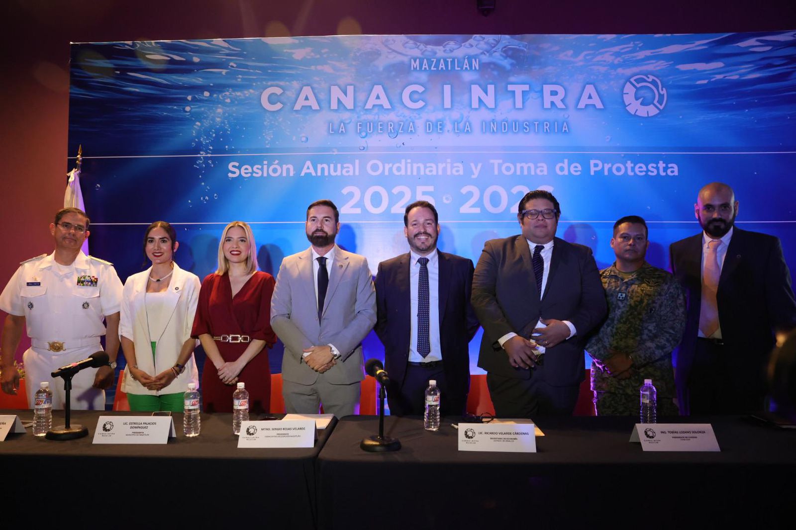 Mazatlán, Sinaloa.- La Cámara Nacional de la Industria de la Transformación, Delegación Mazatlán, es el reflejo de la diversidad de la economía del municipio, puntualizó la Presidenta Estrella Palacios Domínguez, en la toma de protesta de la nueva Mesa Directiva de CANACINTRA Mazatlán 2025-2026, donde fue reelecto Presidente Sergio Rojas Velarde.
