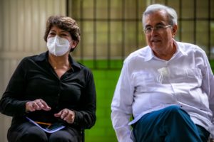 Aguaruto, Culiacán, Sinaloa, 18 de agosto de 2022.- En el marco de la visita a Culiacán que hizo la todavía secretaria de Educación Pública, Delfina Gómez Álvarez, en compañía de quien la relevará en unos días, la también maestra Leticia Ramírez Amaya, el gobernador Rubén Rocha Moya dio a conocer que con recursos estatales, su gobierno aportará al programa federal La Escuela es Nuestra una partida extraordinaria de 100 millones de pesos, voluntad que le reconocieron ambas funcionarias federales.