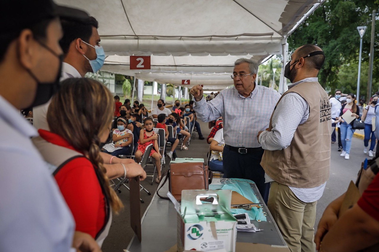 Previo al acto, el Gobernador Rocha Moya y el General Ávila Alcocer, acompañados de Omar López Campos, Delegado de Programas Federales, realizaron un recorrido de supervisión por el módulo de vacunación instalado en la zona militar, para constatar de primera mano las condiciones en que se desarrolla el proceso de vacunación.