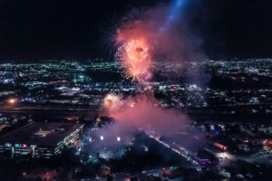 Inmediatamente y al son de las notas musicales de un mariachi, los miles de sinaloenses disfrutaron de un espectáculo de juegos artificiales que iluminaron el negro cielo de la noche con una variedad de brillantes colores, que fueron un deleite para chicos y grandes.