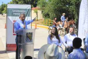 El gobernador Rocha recordó que la primera obra que se hizo en este municipio fue la rehabilitación de la carretera de La Majada de Abajo a La Higuera de los Álvarez Borboa.