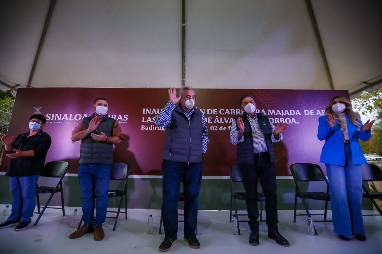 El mandatario estatal arribó a esta sindicatura de Higueras de Álvarez Borboa, para en compañía del presidente municipal, José Paz López Elenes; del secretario general de Gobierno, Enrique Inzunza Cázarez; de su secretario de Obras Públicas, José Luis Zavala Cabanillas y de la diputada local, Verónica Avilés Rochín, entregar los trabajos de reconstrucción de esta carretera, de 12.7 kilómetros de longitud y que representó una inversión de 7.2 millones de pesos.