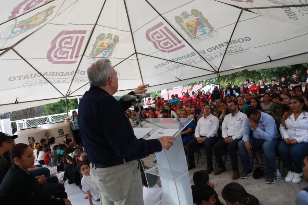Como parte del evento, también se hicieron entrega de 30 catres y 10 tinacos, así como decenas de despensas alimenticias que proporcionó el Sistema DIF Sinaloa en coordinación con el DIF Municipal. En un momento dado de su intervención, el gobernador Rocha fue interrumpido por una niña alumna de la escuela primaria, no para hacer ninguna petición, sino para pedirle que le extendiera el agradecimiento a su hija la doctora Eneyda Rocha Ruiz, por los desayunos calientes que ahora ya gozan sus compañeros de la primaria Domingo Colón.