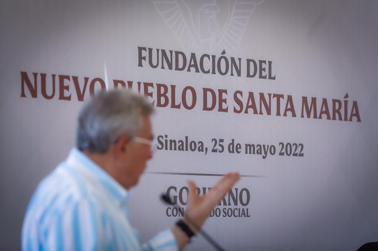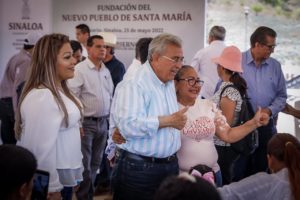 Santa María, Rosario, Sinaloa, a 25 de mayo del 2022.- Al inaugurar formalmente la fundación del nuevo pueblo de Santa María, el gobernador Rubén Rocha Moya agradeció a los comuneros la generosidad mostrada al desplazarse de su lugar de origen para hacer posible la construcción de la presa del mismo nombre, y por eso, aseguró que su gobierno y el del presidente Andrés Manuel López Obrador no les van a fallar para que vivan en una comunidad digna, con todos los servicios básicos.
