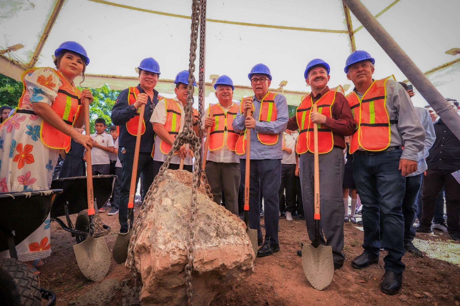 Enseguida el gobernador Rocha dio el banderazo de inicio de los trabajos, acompañado también por el secretario de Obras Públicas, Raúl Francisco Montero Zamudio; la directora del plantel, la profesora Dalia Guadalupe Barrón Chávez; y por el síndico de Lázaro Cárdenas, José María Salazar.