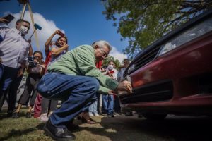 El mandatario estatal fue recibido por la presidenta municipal de Escuinapa, Blanca Estela García Sánchez, en la Unidad Deportiva “Benito Juárez”, para poner en marcha este programa que consiste en acercar los servicios que ofrece el Gobierno del Estado a la ciudadanía y entrega de apoyos de manera gratuita, como despensas, lentes, consultas de medicina general con su respectivo medicamento, entre muchas otras cosas.