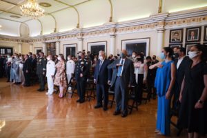 Al igual que Rocha Moya, asistieron como invitados especiales el secretario de la Defensa Nacional, general Luis Cresencio Sandoval, y el secretario de Marina, almirante José Rafael Ojeda Durán, como representantes del presidente Andrés Manuel López Obrador; el presidente nacional de Morena, Mario Delgado Carrillo; la secretaria general morenista, Citlali Hernández; y el gobernador electo de Nayarit, Miguel Ángel Navarro Quintero.