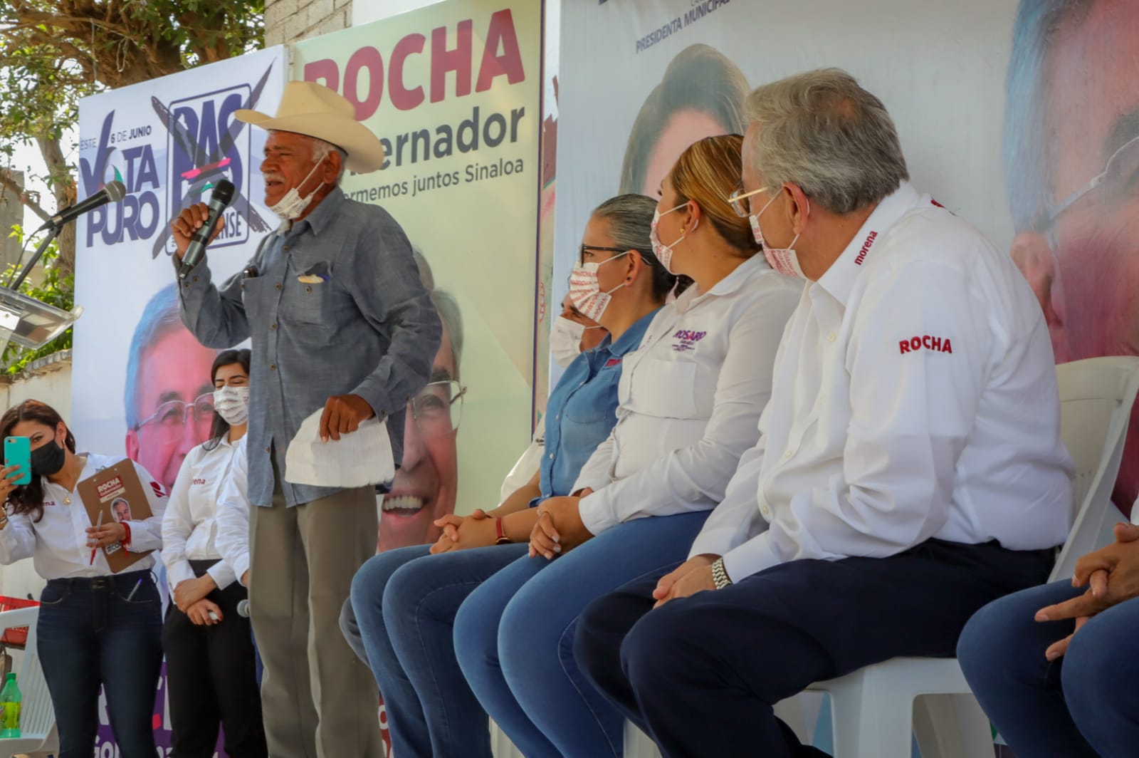 En su recorrido proselitista por este municipio Rocha Moya visitó la comunidad de Agua Verde, donde afirmó que los vecinos de Escuinapa y Rosario tendrán un gobernador amigo que se enfocará en hacer obras de contenido social que generen un entorno de bienestar.