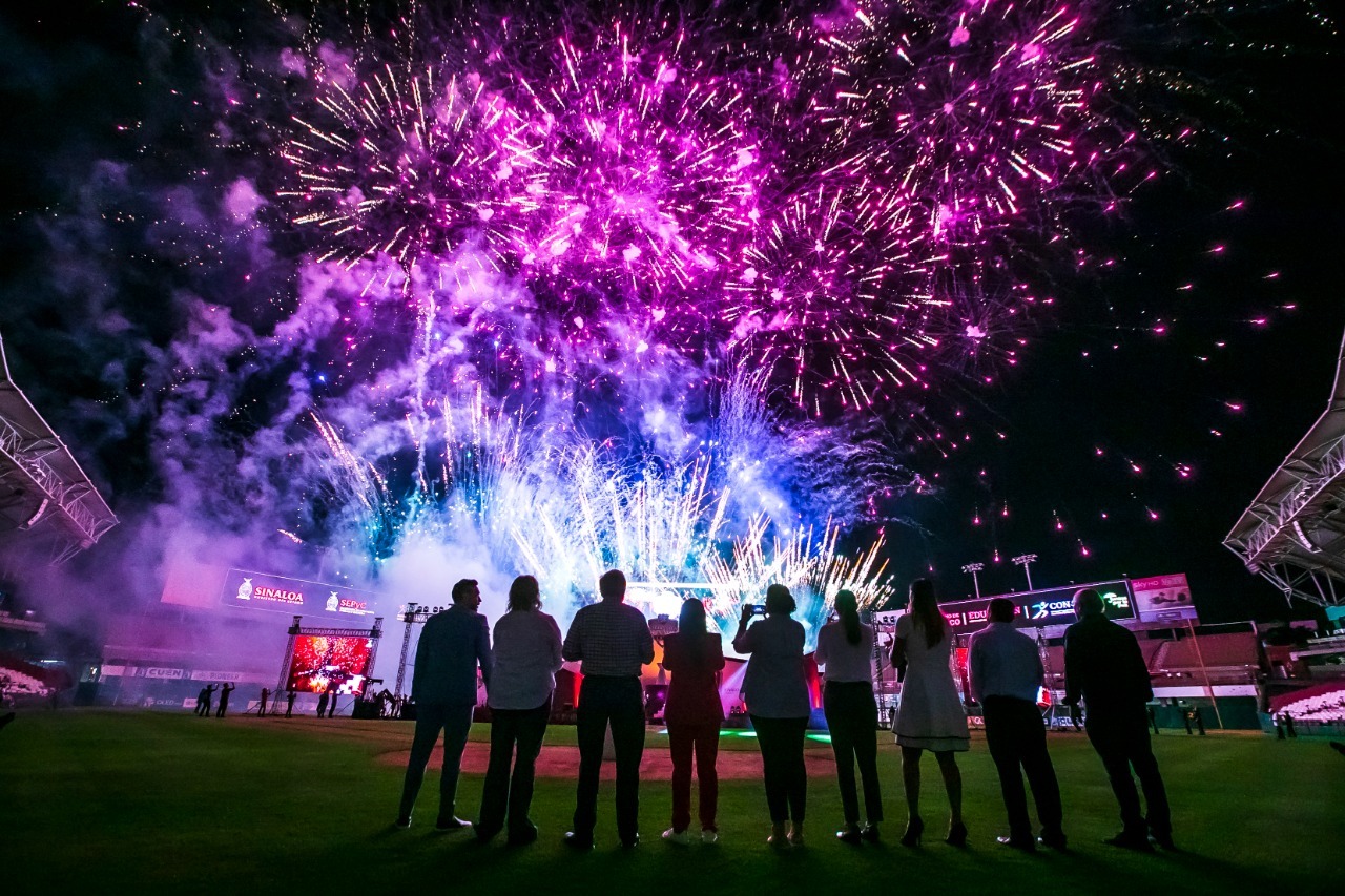Tras la inauguración, el estadio de los Tomateros de Culiacán se vio iluminado por un sinfín de fuegos artificiales que embellecieron y marcaron la inauguración de este evento, el cual reúne a deportistas en diferentes disciplinas de todo el país.