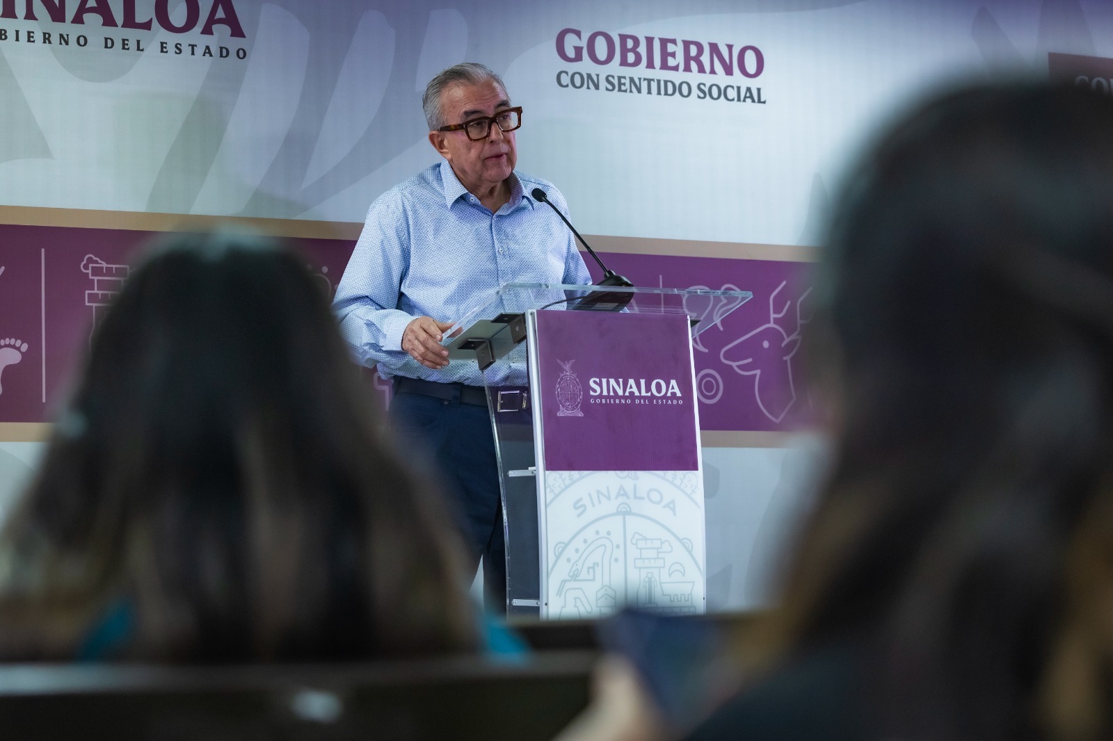 Culiacán, Sinaloa.- Durante la conferencia semanera el gobernador Rubén Rocha Moya, hizo un llamado a los maestros y maestras a acudir a las instituciones educativas a dar clases de forma presencial, haciendo un llamado a la conciencia de las y los docentes para brindar una tranquilidad y certeza a los padres de familia, de que Sinaloa regresa a sus actividades cotidianas.