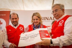 “Como gobierno vamos a estar cerca, apoyando a estas instituciones humanitarias, pues Cruz Roja se ha ganado por siempre el respeto de la humanidad”, dijo el gobernador Rocha, antes de entregar el cheque simbólico de dos millones de pesos, primeros recursos de la colecta.