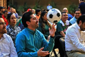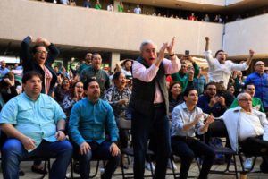 Culiacán, Sinaloa, a 22 de noviembre de 2022.- Al lado de cientos de trabajadores de Palacio de Gobierno, el gobernador Rubén Rocha Moya presenció el debut de la Selección Mexicana de Futbol en el Mundial de Qatar, en un partido que empató a cero goles con su similar de Polonia, donde la figura del juego fue el portero mexicano, Francisco Guillermo Ochoa al detener un penalti del delantero Robert Lewandowski, quien milita en el Barcelona FC.