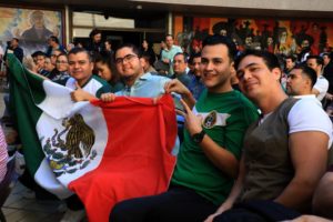 El mandatario estatal bajó a la explanada central de Palacio de Gobierno, donde fueron colocadas dos megapantallas para presenciar el debut de México, y en compañía de la mayoría de los secretarios de su gabinete, se dispuso a disfrutar de este cotejo, durante las dos horas que duró el partido.