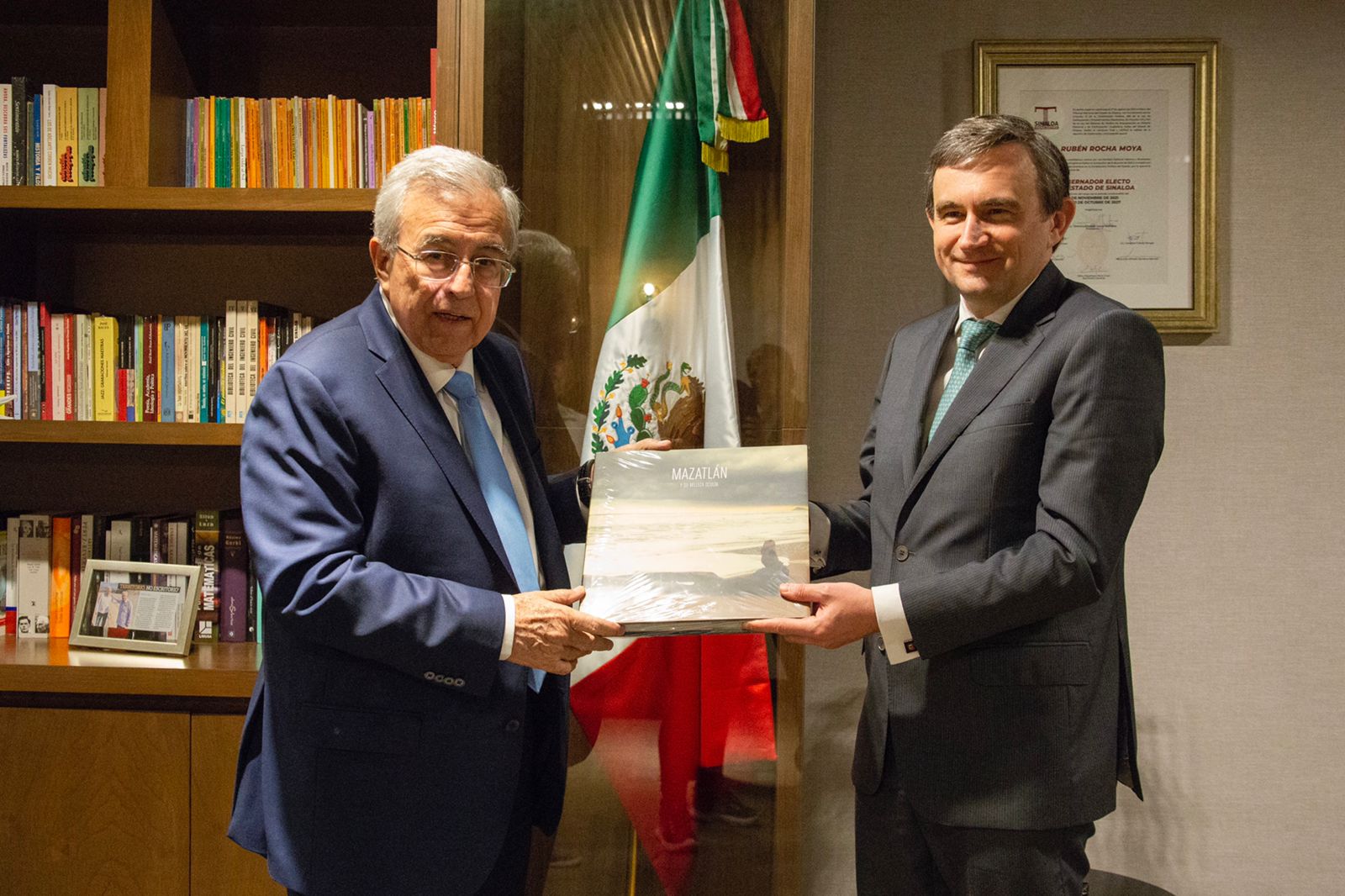El gobernador Rubén Rocha Moya recibió en su despacho al embajador de Polonia en México, Maciej Zietara, en su primera visita a Culiacán, con quien abordó las posibilidades de cooperación en dos temas específicos, como son el desarrollo agrícola y las tecnologías verdes, que representan una oferta interesante que puede compartir este país europeo con Sinaloa.