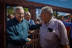 Ejido Benito Juárez, Ahome, Sinaloa, a 20 de septiembre de 2022.- El gobernador Rubén Rocha Moya regresó al ejido Benito Juárez, en el municipio de Ahome, el cual visitó en sus primeros días como gobernador, y lo hizo ahora para recoger la palabra empeñada con sus habitantes, quienes le solicitaron la ampliación de la planta potabilizadora, la construcción de la techumbre para la cancha de usos múltiples y el encarpetado de la carretera que sirve como calle principal, obras que transformaron radicalmente esta pequeña población de apenas unos cientos de habitantes.