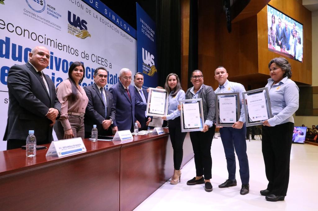 Como parte del evento, los reconocimientos de excelencia educativa fueron entregados a los titulares de las Unidades Académicas por el gobernador Rocha, el rector Madueña y por el propio director general del CIEESS, el doctor Miguel Ángel Tamayo Taype, quien visitó Sinaloa para tal efecto.