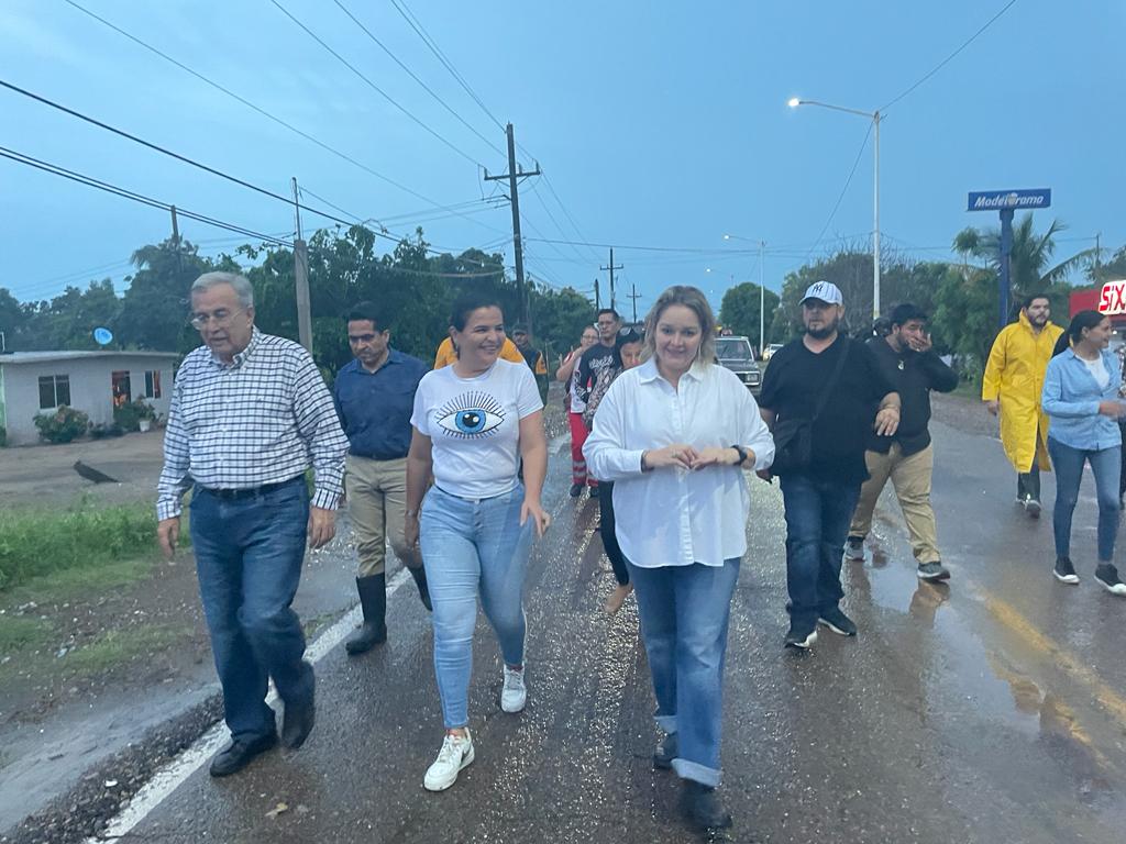 Dautillos, Navolato, Sinaloa, 06 de septiembre del 2022.- Derivado de las fuertes lluvias que se han registrado en los últimas horas en diversas zonas de la entidad , el gobernador Rubén Rocha Moya acompañado de la alcaldesa de Navolato Margoth Urrea y la titular del DIF Estatal Eneyda Rocha Ruiz, visitaron el campo pesquero de Dautillos, en Navolato donde otorgaron apoyos como despensas y colchonetas a 38 familias afectadas por las precipitaciones y se comprometieron con la ayuda para los habitantes de Yameto, quienes también fueron afectados por las inundaciones.