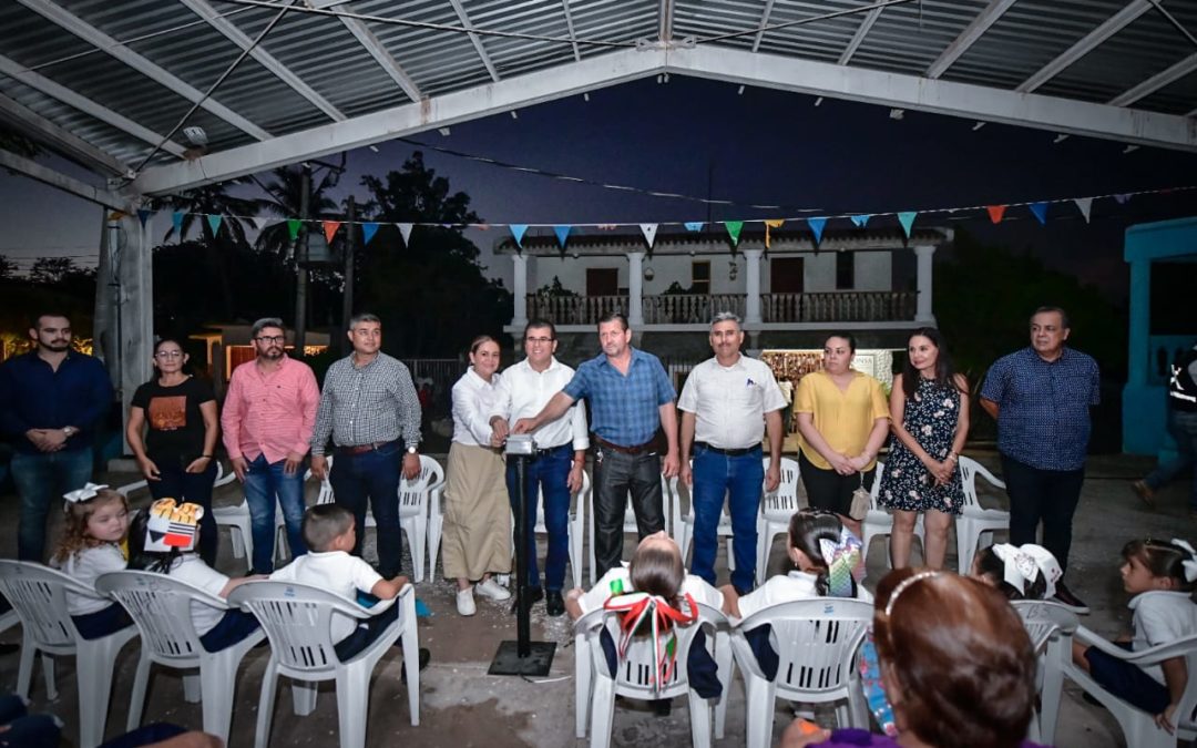 Edgar González Alcalde de Mazatlán, acompañado de la Doctora María Teresa Apodaca de González, Presidenta del Sistema DIF, regidores, funcionarios y habitantes del Puente del Quelite, subieron el switch para encender las nuevas lámparas que iluminan todo el pueblo.