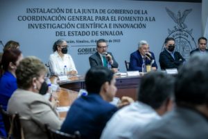 Culiacán, Sinaloa, a 15 de junio del 2022.- Con el propósito de refundar la importancia de la ciencia y la tecnología en Sinaloa, destinarle mayores recursos públicos, apoyar proyectos y formar investigadores, el gobernador Rubén Rocha Moya instaló la Junta de Gobierno de la Coordinación General para el Fomento a la Investigación Científica e Innovación del Estado de Sinaloa (CONFIE).
