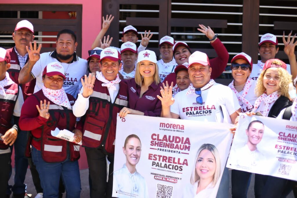 El recorrido concluyó en el estanquillo de Doña Angelina donde la candidata hizo un alto para saludarla, la señora pidió apoyo para pavimentar la calle, le dijo al fotógrafo que le tomaran foto con Estrella Palacios y se puso una mascada llena de estrellas mientras se acomodaba el sombrero de ala ancha para salir en la foto junto a la abanderada de Morena.