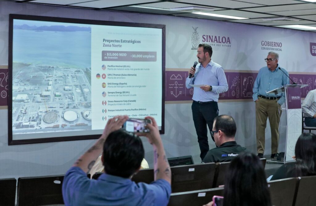 Entre los proyectos más destacados que ya están en marcha se encuentran la planta de metanol verde de Pacífico Mexinol, que será la más grande del mundo; la planta de amoniaco de GPO; la planta de hidrógeno verde de DH2 Energy impulsada con energía solar; la terminal de gas natural licuado de Sempra Energy; el proyecto minero de cobre de Oroco Resource Corp; el Parque Industrial Puerta Pacífico; y la futura carretera Topolobampo–Choix–Chihuahua, que permitirá una conectividad directa con Texas, Estados Unidos. Estos proyectos en conjunto representan una inversión estimada en 13 mil millones de dólares a lo largo de los próximos años y la generación de aproximadamente 30 mil empleos.