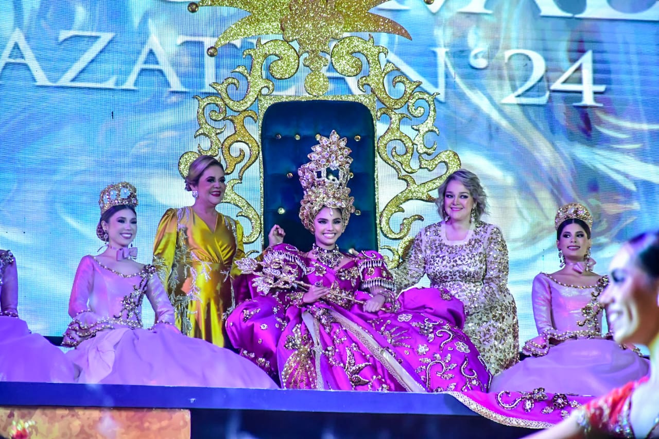 Eneyda Rocha Ruiz y María Teresa Apodaca de González, presidentas de los sistemas DIF Sinaloa y Mazatlán se encargaron de coronar a Su Graciosa Majestad en medio de una explosión de coloridos fuegos artificiales y el aplauso de miles de asistentes en el Estadio Teodoro Mariscal.