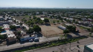 Mazatlán, Sinaloa.– Para brindar espacios deportivos dignos a los mazatlecos, la Presidenta Municipal, Estrella Palacios Domínguez, llevó a cabo este martes una supervisión a los trabajos de rehabilitación del campo de fútbol en el fraccionamiento Santa Fe.