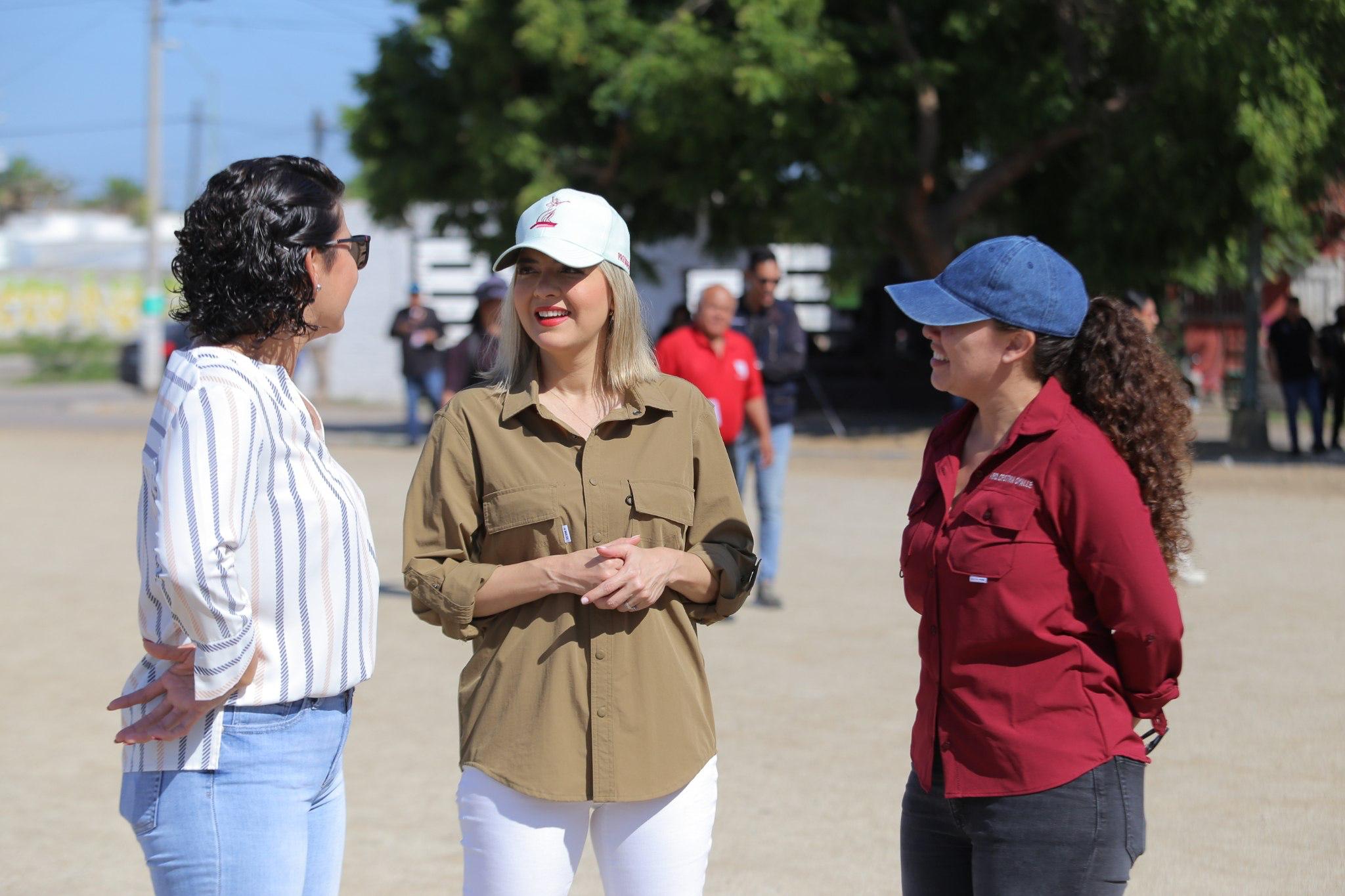Mazatlán, Sinaloa.– Para brindar espacios deportivos dignos a los mazatlecos, la Presidenta Municipal, Estrella Palacios Domínguez, llevó a cabo este martes una supervisión a los trabajos de rehabilitación del campo de fútbol en el fraccionamiento Santa Fe.