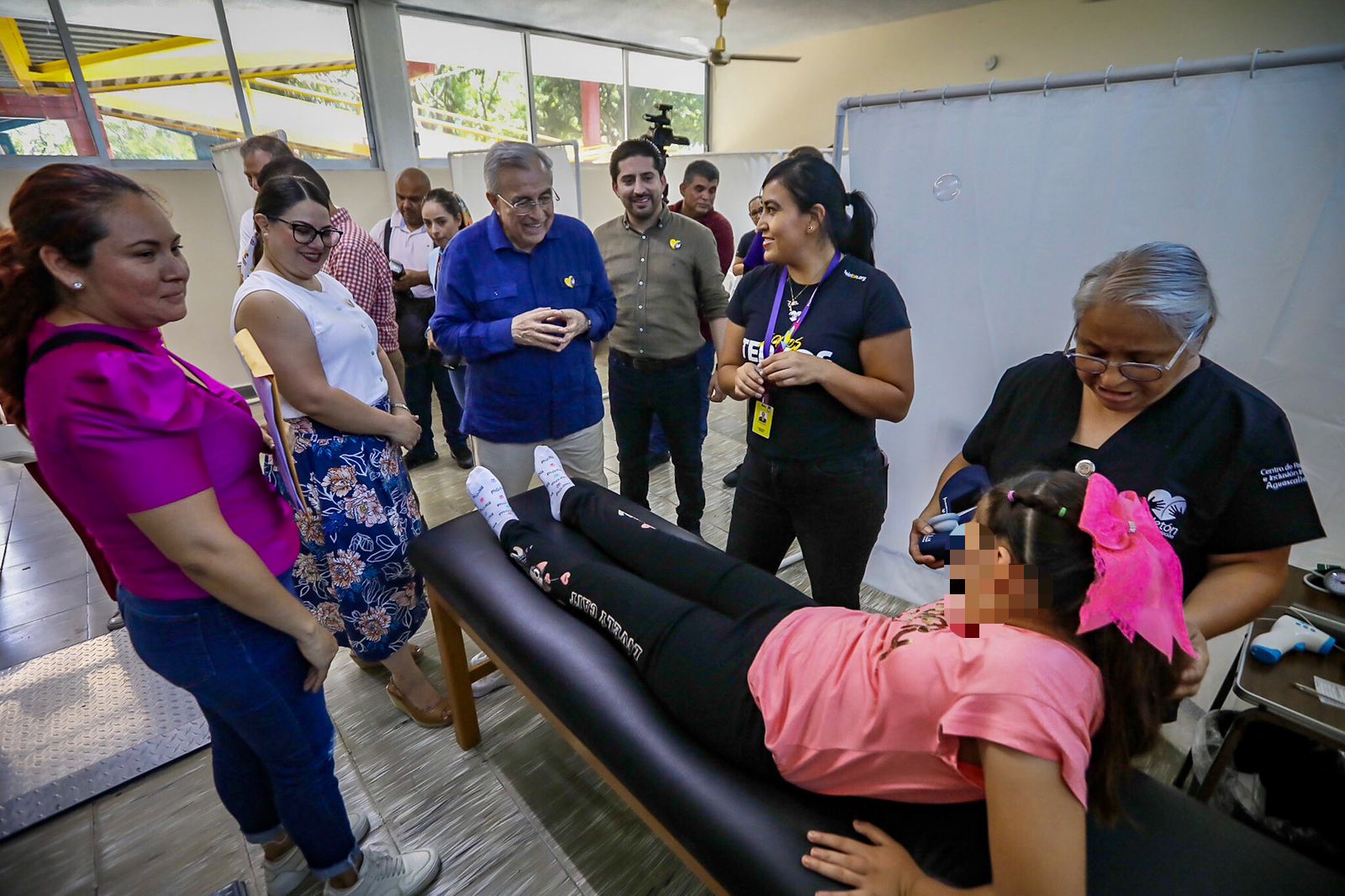 Con el propósito de agilizar el proceso para las familias con algún integrante que requiere apoyo para tratar el autismo y la discapacidad motriz, a través del Centro de Rehabilitación e Inclusión Infantil Teletón que se inaugurará próximamente en Mazatlán, esta mañana el Gobernador Rubén Rocha Moya realizó un recorrido de supervisión en el Instituto Cultural de Occidente, centro educativo que funge como sede temporal para las Jornadas de Valoración e Incorporación de los interesados en obtener cupo para el CRIT, quienes participaron en una fase inicial de inscripción telefónica.