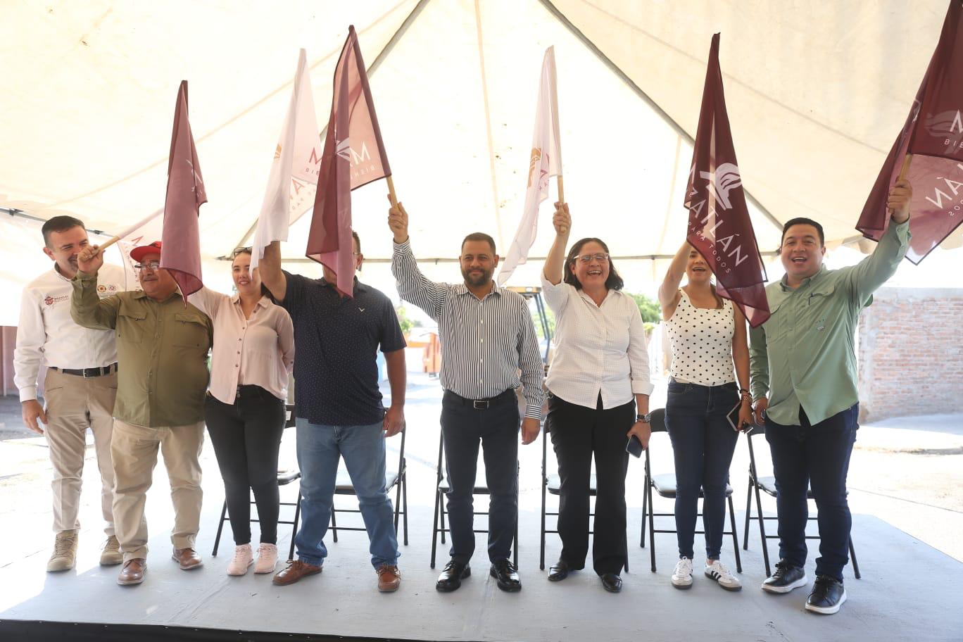 Mazatlán, Sinaloa.- A casi un mes de que la Presidenta Municipal Estrella Palacios Domínguez estuvo en la colonia Lomas de San Jorge, para dar inicio a la obra de pavimentación de la calle Ciudad del Maíz, el Equipo del Bienestar regresó para arrancar similares trabajos en la calle Río Verde, donde se invertirán casi 3 millones de pesos, para el beneficio de cientos de familias mazatlecas, que finalmente tendrán su calle pavimentada.