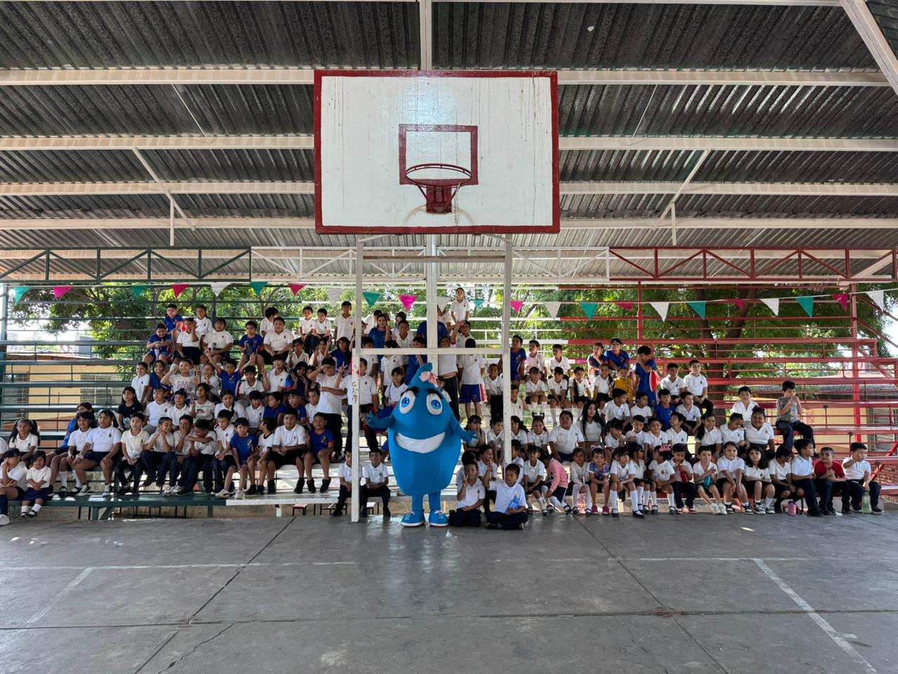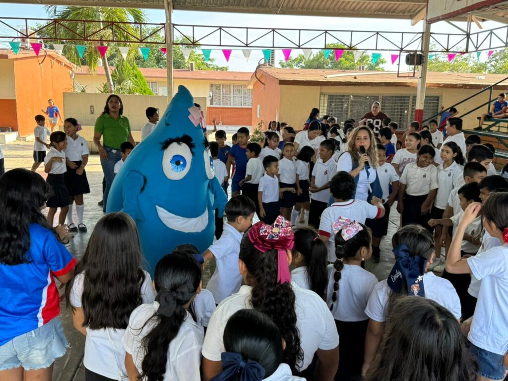 Mazatlán, Sinaloa.– Cuidar del agua y platicar con sus papás y abuelos sobre cómo usarla de mejor manera, fueron parte de los compromisos expresados por las niñas y los niños de la Escuela Primaria Ignacio Chávez, donde esta semana el Departamento de Cultura del Agua de la Junta Municipal de Agua Potable y Alcantarillado realizó dos jornadas informativas dirigidas a la comunidad escolar, como parte del programa educativo “JUMAPAM en tu Escuela”, que contó con la entusiasta participación de “Tita”, la Gotita. Acciones que impulsa el Gobierno Municipal, que dirige la Presidenta Estrella Palacios Domínguez, a través del organismo operador.