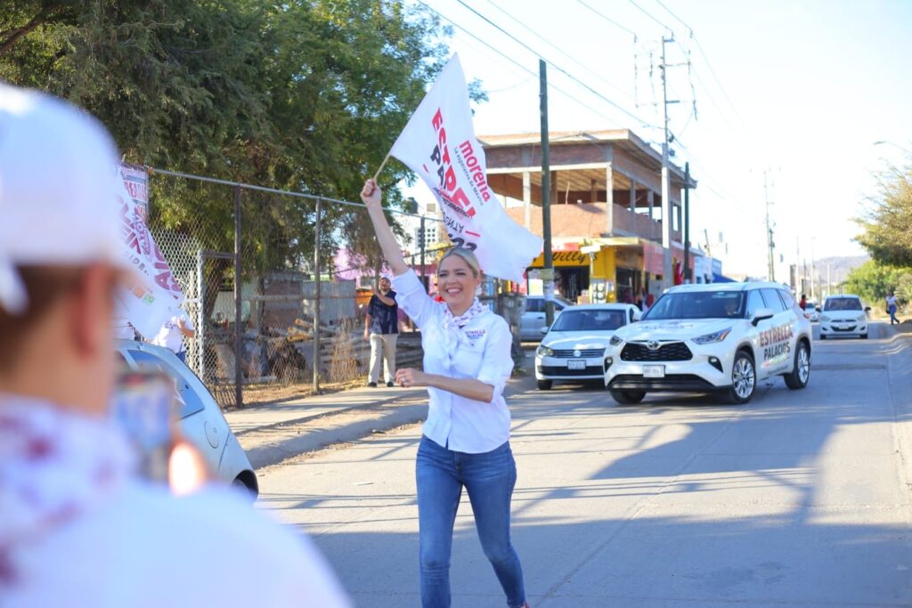 La candidata de Morena y el Partido Verde recorrió este martes por la tarde este asentamiento y además de llevar un mensaje esperanzador, pidió a los colonos acudir muy temprano a las urnas el 2 de junio y votar por los candidatos de Morena para que continúe la transformación.