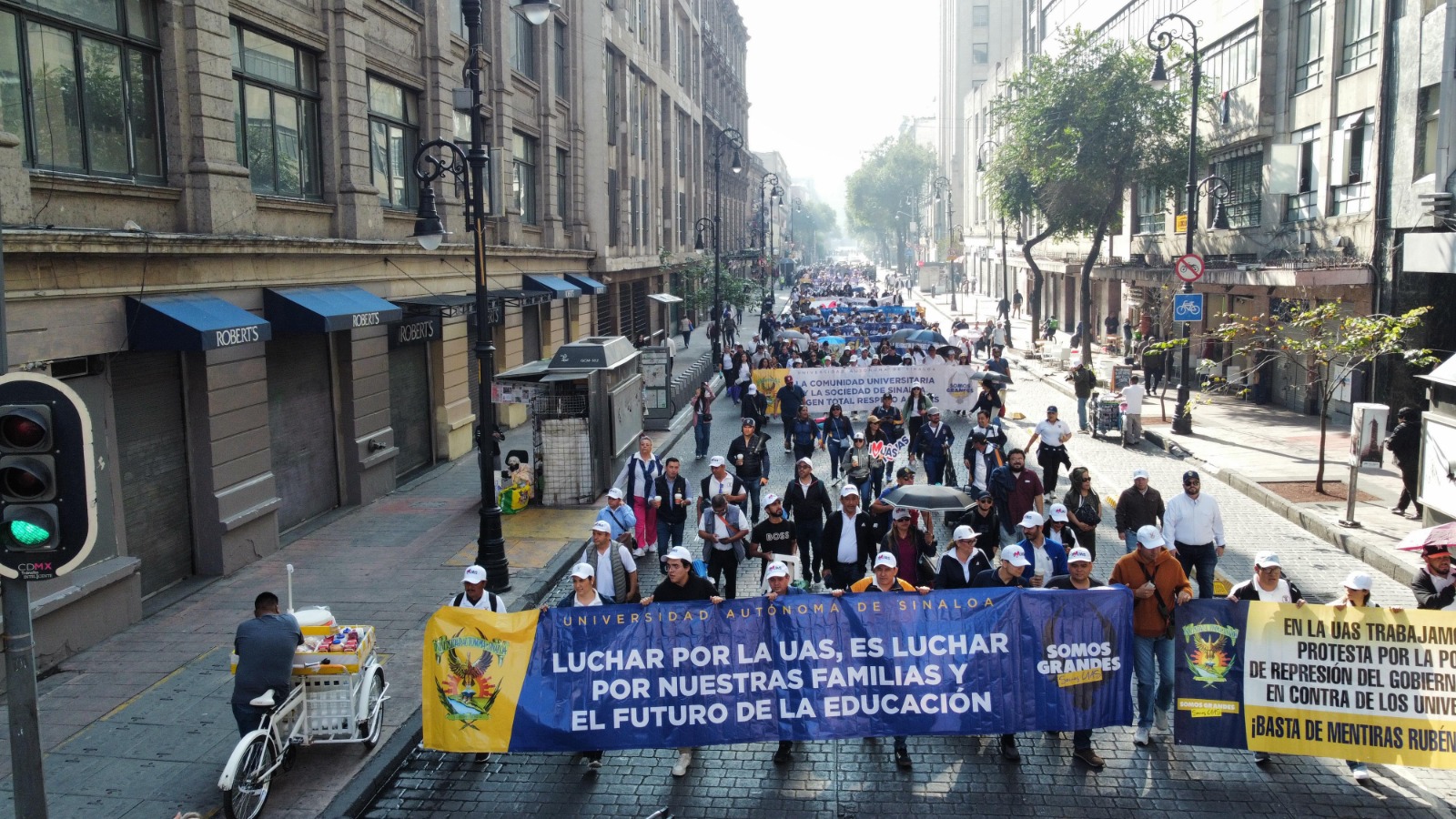 Cabe destacar que en punto de las 8:30 de la mañana hora centro, la comunidad universitaria emprendió su recorrido con lonas y pancartas en mano por la calle 20 de Noviembre rumbo a las afueras de la secretaría de Gobernación.