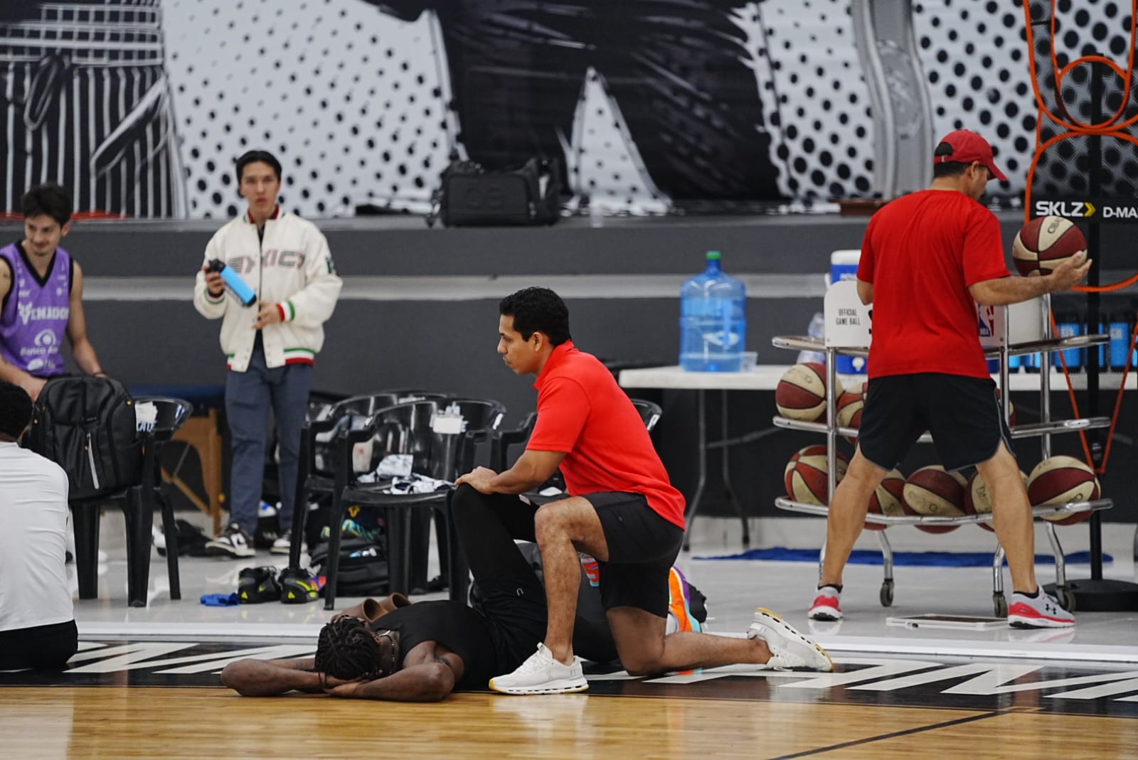 El estratega estadounidense estuvo acompañado por el coach Asociado Erik Rashad, así como los jugadores Dakota Queen, Frank Acosta y Talib Zanna.