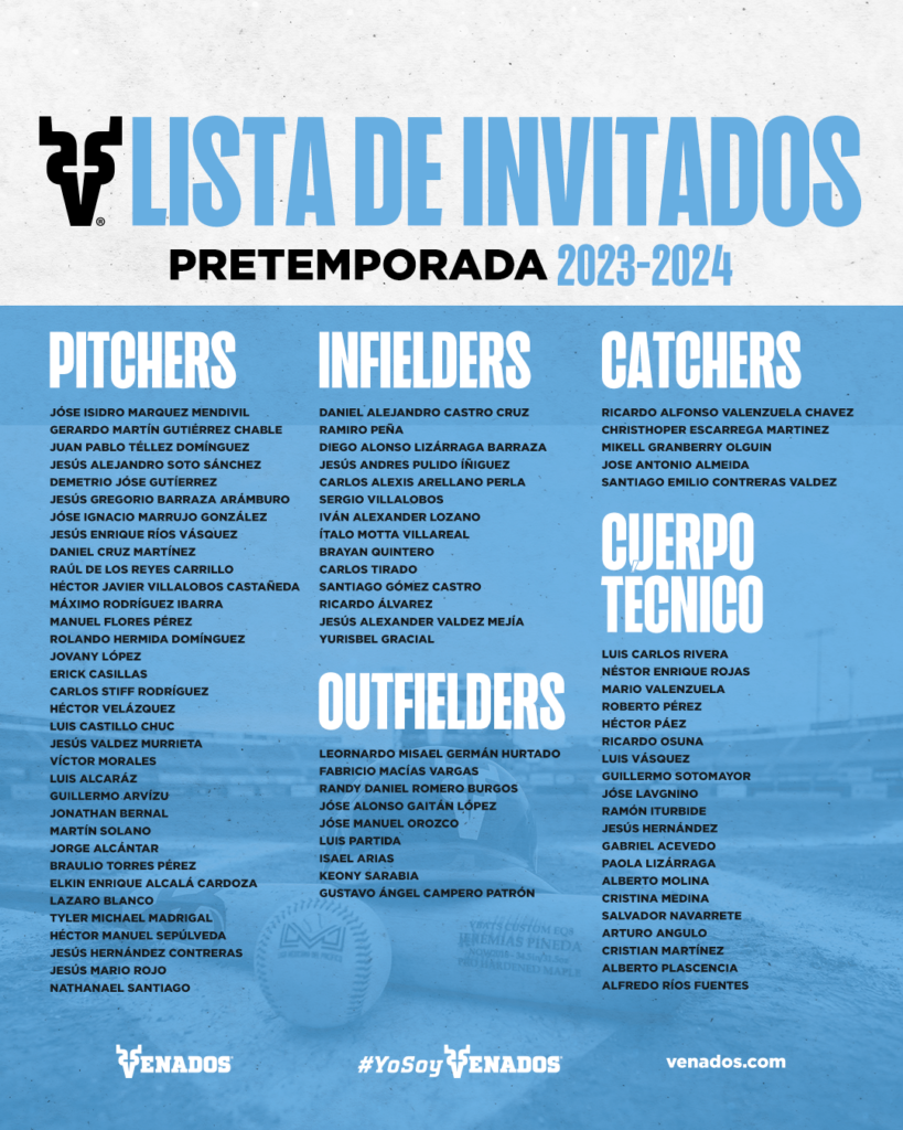 La lista de jugadores invitados al campo de entrenamiento consta de 63 peloteros, todos en busca de defender los colores de Venados de Mazatlán y hacer vibrar el Teodoro Mariscal una vez más.