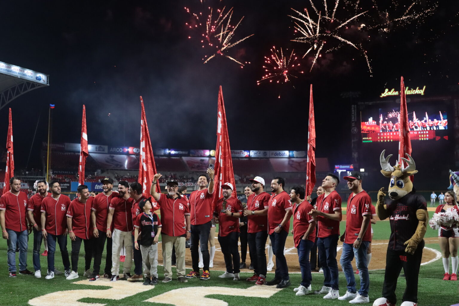 José Antonio Toledo Ortiz, director general de Venados e Ismael Barros Cebreros, presidente de Venados, entregaron a todos los integrantes de la agrupación, la presea en el diamante del juego del Estadio Teodoro Mariscal.